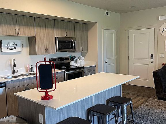 2nd Story Condo with Beautiful Mountain Views! It has two bedrooms. One master bedroom with a large walk in closet and bathroom. The guest bedroom has a walk in closet and there is a large guest bathroom. The condo has a laundry room, and hot water heater. The floor plan in the living room is open, with a large white quartz island featuring ample amounts of drawer and cabinet space. Condo comes furnished with Frigidaire appliances. Floors are light gray LPV in the kitchen/living, and bathrooms with carpet in the bedrooms. The cabinets are a light gray wood veneer with steel handle finishes throughout the condo. The condo is located off of 7th St. in Ogden Utah right behind the animal hospital, and was built two years ago. It is located close to many restaurants off of 12th street, close to Snow Basin, and near many local attractions like historic 25th street. Owner pays HOA which includes WIFI, Water, Trash, and Snow removal. Owner pays electric and gas.