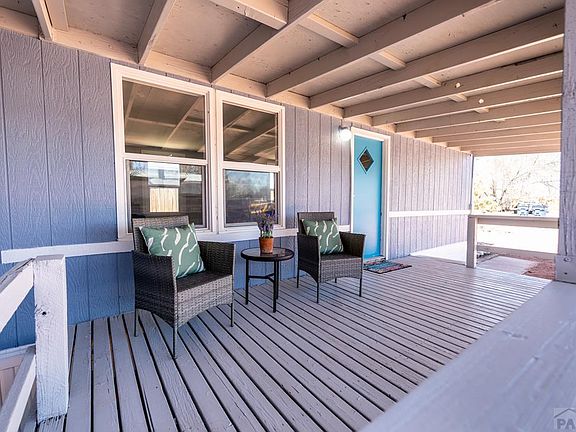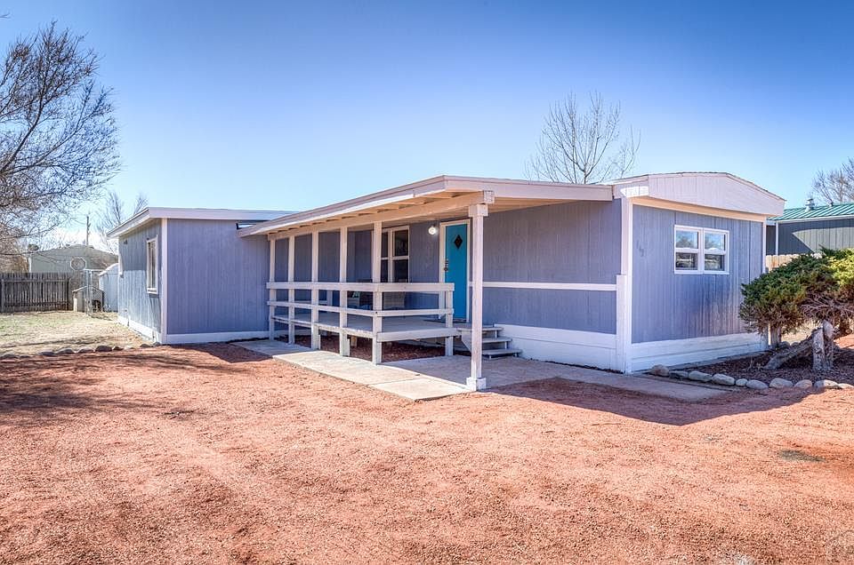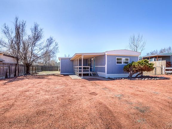 Fully remodeled 3-bedroom, 2-bathroom home with ample outdoor space! Fresh exterior paint gives it a modern touch, while the covered wood porch and landscaped yard with mature trees create a welcoming entrance. The gravel driveway provides plenty of parking, including space for an RV or boat. Inside, the open-concept living and dining area is bright and airy, with large windows and warm-toned laminate flooring throughout the main areas. The kitchen features white cabinets, subway tile backsplash, stainless steel appliances, including a gas range, and a large stainless sink with an updated faucet. A built-in pantry/hutch provides additional storage. The spacious primary suite is a private retreat, featuring plush carpet, a ceiling fan with remote control, large window, and two walk-in closets with built-in shelving. The attached en-suite bathroom is designed for relaxation, with walk-in shower, large corner soaking tub, and built-in linen storage. A sleek vanity with a black quartz stone top, an updated mirror, and modern lighting complete the space. The hallway leads to two secondary bedrooms, each with new carpet. Another full bathroom features a walk-in shower with a tile surround, sliding glass doors, and vanity with quartz stone top, an updated mirror and lighting. The laundry area, conveniently located in the hall, includes overhead cabinets for storage. Exiting the back door, the property features a privacy fence on three sides, a chain-link dog run, & metal shed.