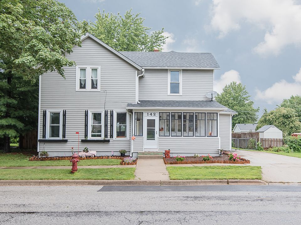 Huge two story historic home in the heart of Hampshire-Original Hardwood floors throughout. You get a bit of the old with a bit of the new in this amazing home! Gorgeous dining room with built in hutch, large enough for your holiday meals with family! Great size kitchen boasts all new appliances! Living room is huge with french doors off to a great deck- with a beautiful garden like back yard! 3 good size bedrooms, 2 full baths ,huge loft... great space for home office or kids play area! Enclosed front porch is the perfect spot to read a book with a glass of tea at the end of the day! In addition to the all new appliances, home has brand new a/c, furnace, water heater, u/v air purifier, and roof!!! 2 car garage off back alley- fenced yard - extra off street parking. This home is a must see!!!