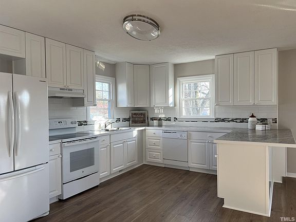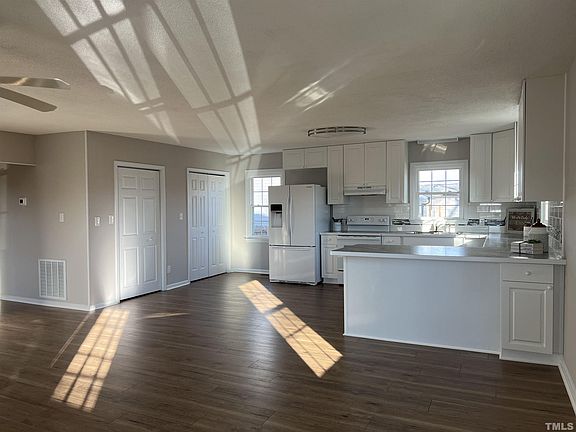Home was built on original foundation in 1993. Home with 2 more adjacent lots to convey. (.33 acres) Home was a rental. New kitchen cabinets just installed, new laminate flooring and carpet. HVAC installed 12/2014. Shingles replaced in 12/2019. New countertops along with some new light fixtures, & dishwasher. Refrigerator was installed 2013; selling AS IS. Kitchen is highlighted with backsplash. Open floor plan is a must see & bar area is great for entertaining. Garage with concrete flooring.