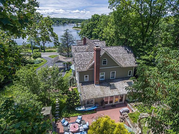 Rare opportunity! Waterfront 5000sqft Colonial and 1500sqft cottage overlooking Huntington Harbor. Extensive updates throughout, including professional eat-in kitchen that adjoins family room and mudroom with slate floor and first floor laundry room. Panoramic sunsets from front covered porch and beautiful en-suite master bedroom. Third floor with 2 bedrooms and full bathroom. French doors off rear of house lead to tranquil patio with stream, mature gardens, and outdoor fireplace offering wonderful space for entertaining and relaxing. Detached 3 car garage with room for lifts, and direct Harbor access to enjoy water sports right from your property. Separate cottage with 2 en-suite bedrooms, laundry, recreation room, and eat-in kitchen that adjoins to living room, perfect for visiting guests! This spectacular property is conveniently located only 1/4 mile to marinas, 1 mile to restaurants, and 2 miles to Huntington Village & parks.