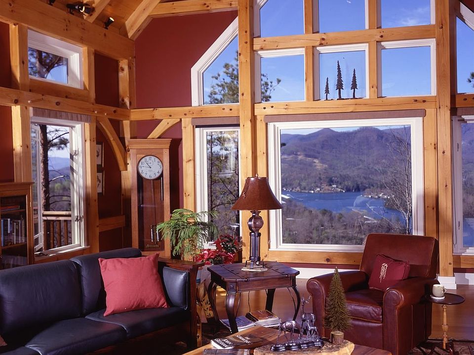 Mountain living at its Best! This post and beam masterpiece overlooks beautiful Lake Laure, NC - One of America's Top 10 travel destinations... Renowned for its natural splendor, recreational lake and river activities, climbing, hiking, biking and championship golf courses. When you are done playing, relax in the comfort of your solar home with radiant heated floors, finish sauna and outstanding great room featuring gothic cathedral beamed ceilings and immense stacked stone fireplace. Enjoy preparing holiday meals like a chef, on your Viking oven range, while your guest gather around the generous kitchen island. Serve dessert on the deck, then recline with coffee into one of the porch swings. Watch as Eagles soar, the sun sparkle from across the Lake then slowly fades as it disappears behind the mountain ridge.