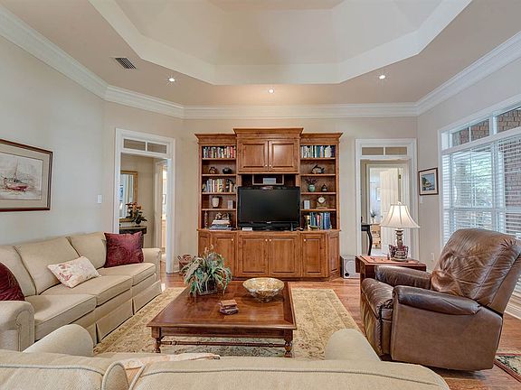 You've got to check out this amazing home located on a quiet, side street in the sought-after golf course neighborhood of Rock Creek in Fairhope. Driving up you'll notice the beautifully maintained yard with mature trees. The home itself has been meticulously maintained and is in pristine condition. As you enter, note the gorgeous hardwood floors and large open rooms that are flooded with warm, natural light from the banks of windows and transoms. You'll enjoy the gas-log fireplace and custom built-ins in the open living room, custom cabinets and granite counters in the kitchen area and incredible attention to detail throughout this showplace. Large rooms with trey ceilings, detailed moldings, and spacious closets are throughout the home. The split plan allows for peace and quiet in the master suite. Tuck yourself away with a good book in the seating area of the master or in the large, jetted tub. You'll love the private and tranquil screened back porch and brand new open wood deck. Add in the over-sized double garage and large laundry room and you'll see that this home has it all. Truly a must see in Fairhope and priced to move quickly. Don't miss this one. Call for your appointment to view it today.