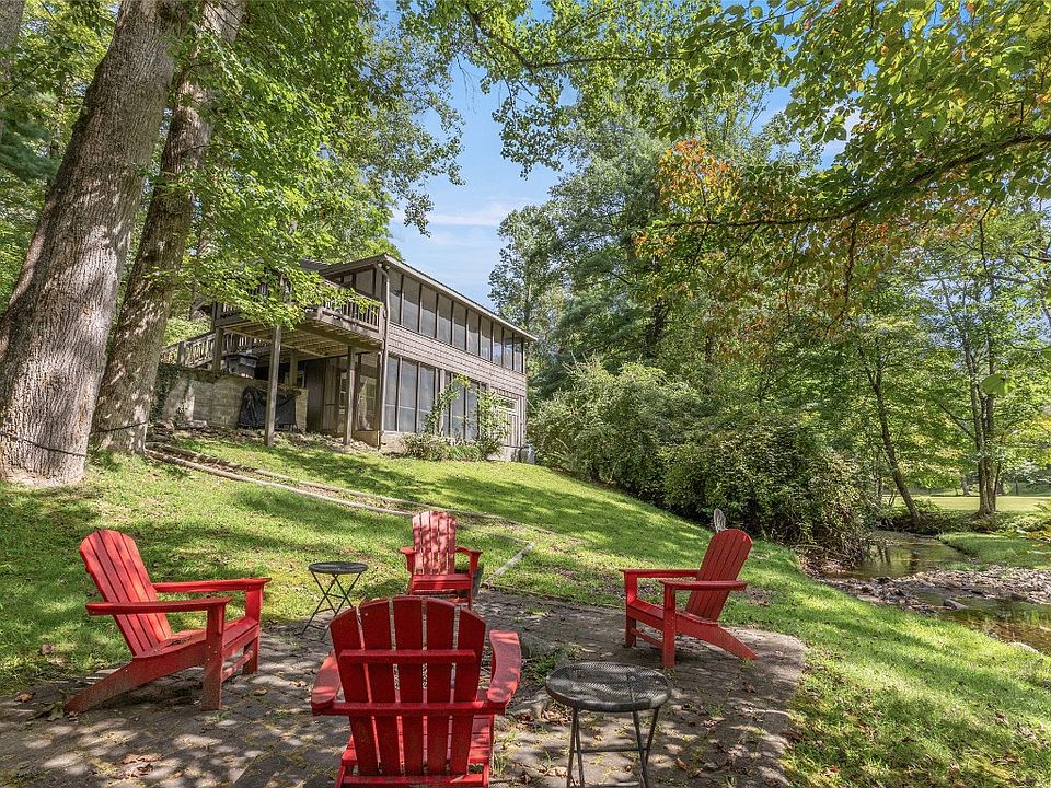 The lower level hosts the primary suite, complete with its own fireplace, and both bedrooms open onto a second screened porch with tranquil creek views. Thoughtful details like heated bathroom floors add comfort throughout. Outdoors, gather around the firepit to enjoy the peaceful sounds of the bubbling creek, or watch fireflies dance across the beautifully landscaped yard. There is abundant wildlife to see at this property! The home is offered furnished with a few exceptions, making it move-in ready for your personal mountain getaway or a seamless continuation as a vacation rental.