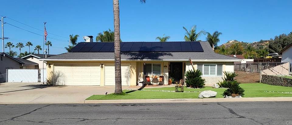 This is the PERFECT HOME! Located on a 0.46 acre lot, this beautiful conventional style family home is located on a quiet cul-de-sac in El Cajon. This property has something for everyone! Bedrooms and bathrooms have recently been remodeled and the updated kitchen, with granite countertops, and stainless steel appliances. It has a master bedroom with ensuite, 3 additional bedrooms, additional full double sink bathroom, a formal living room, formal dining room and a family room with a fireplace and wood shutters throughout the house. The backyard has an open patio, a BBQ bar area with a gazebo, a fire pit, a pool, and still plenty of yard left to make it your own. The property also has space to park an RV with a clean out drain. As an additional perk, solar panels have been recently installed and are owned, not leased. Make your appointment today!
