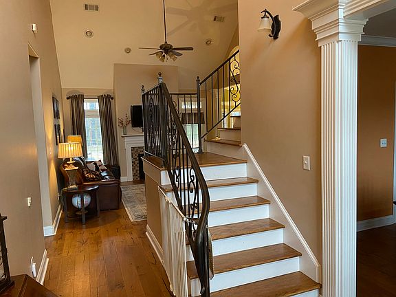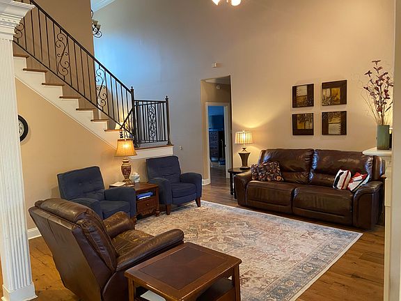 WOODLAND HILLS SUBDIVISION...WOW 5BR 3BA home, walk into the foyer to the large living room with soaring ceilings and gas logs. Formal dining room, kitchen with lots of cabinets, breakfast room. Two bedrooms on main level!!! The master offers lots of space and light, tray ceiling. The master bath has walk in tile shower and separate whirlpool, separate vanities, separate closets, 3 bedrooms and on bath upstairs. No carpet, hardwood and tile only floors. Crown molding, covered back patio, fenced backyard and double attached garage.