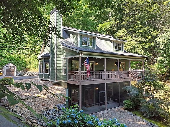 Nestled among the trees in a peaceful, private setting, this beautiful 3-bedroom, 3.5-bath home offers the perfect blend of charm, comfort, and functionality. Located in a serene wooded subdivision, this home welcomes you with a beautiful foyer that opens into an open-concept living area—connecting the living room, kitchen, and dining space seamlessly. The stunning kitchen features granite countertops, stainless steel appliances, and ample cabinetry, while the living room boasts a gorgeous stone gas log fireplace and soaring ceilings that open to a gorgeous loft above. Upstairs, you'll find a private bedroom and full bath, perfect for guests or a quiet retreat. The fully finished basement offers incredible versatility with its own bedroom, full bath, kitchenette, and living area—ideal for a mother-in-law suite, guest quarters, or income-producing rental. It even has its own exterior entrance and a screened-in porch for enjoying the outdoors in comfort. Enjoy outdoor living from multiple spaces: a spacious main-level deck, a welcoming front porch, and the serene lower-level screened porch. The property also includes a detached 2-car carport, a storage building and a paved driveway. With numerous updates throughout and beautiful wooded surroundings that offer both privacy and natural beauty, this home is a must-see!
