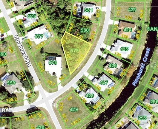 Build your Dream Home on this X-flood zone lot today! This beautiful private Home Site is located in the popular Pinehurst section of Rotonda West and backs onto Golf Course property with a buffer of trees and no backyard neighbors! Go golfing at one of the 5 Premier Community Golf Courses, spend the day at a local beach or just relax at home. In the evening, sit on your lanai by the pool, enjoying the fiery skies only a sunset can paint, and then head to one of the many local restaurants for a delicious dinner with your neighbors. Also close to shopping and marinas, you have quick access to both Englewood and Boca Grande. This homesite will not last long, so drive by and call today!