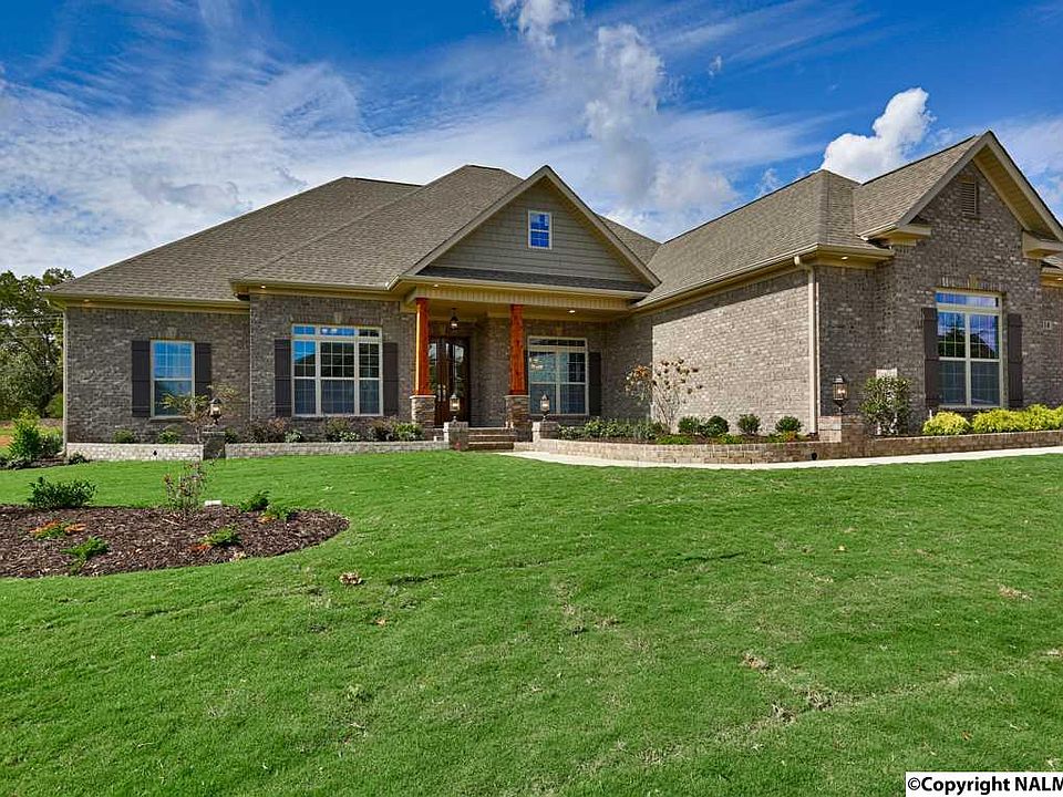 This elegant custom home bridges an open concept and a traditional 4 bedroom home & is an entertainer's dream! Walk into the foyer and see the spacious open design with cofered ceiling in the gathering room, spacious pantry, plenty of natural light and a kitchen to die for. You will love the large covered outdoor living area featuring a screened in porch with outdoor fireplace. You can be the first to own one of Woodland Homes' newest plans, the Carlyle Grand! If you are looking for an opportunity to live in an elegant community near shopping, Redstone Arsenal, and Research Park...don't miss this opportunity.