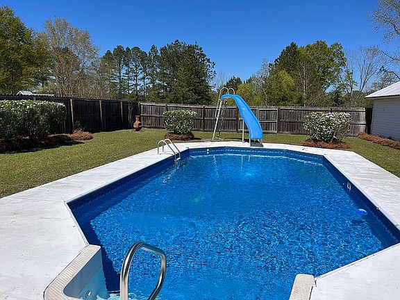 3BR, 2 1/2 Bath 1850 sq ft. house with swimming pool, deck and a large workshop (man cave) on approximately 1.3 acres with a pond. Plantation style shutters throughout, solid wood, custom built cabinets in the kitchen and master bath. Heated tile floor and walk in shower with steamer.