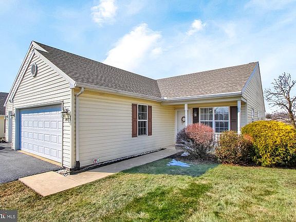 Come home to Equine Meadows! Rare opportunity to own in this wonderful 55+ Community featuring Community Center with activities, fitness, indoor pool, picnic area, stocked fish pond, walking trails, sidewalks, street lights and so much more. No snow to shovel or grass to cut, so you can sit back and enjoy life! Located within 1 mile of everything you could possibly want or need......groceries, pharmacies, worship centers, conveniences, recreation, restaurants, post office, Red Lion Community Center. Home is ready for occupancy! End-unit with covered front porch; rear deck and lower level patio.....all with a view. 2-Car garage with opener; Crown moldings; living/dining area room; kitchen with appliances, breakfast bar and pantry; family room with deck access; primary bedroom and bath; additional bedroom; additional bath with laundry closet; finished 2-car garage; and something most other units don't have .... a mostly finished walk-out lower level with 2nd family room, full bath, and three unfinished rooms that could be finished for additional living space or use for storage. No shortness of space here! Washer and dryer included. Agents - See Agent Remarks!