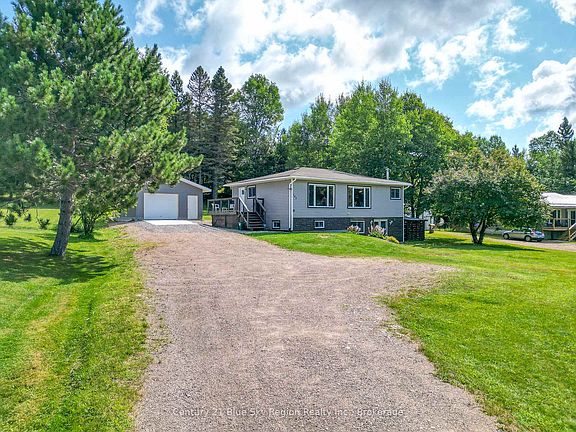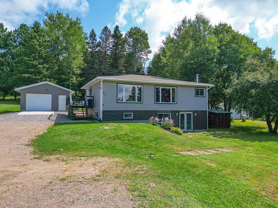 Welcome to 142 Gagnon just 25 minutes from North Bay and minutes from Highway 17, offering the perfect blend of privacy and convenience.Outside, enjoy a large metal gazebo, a cozy fire pit, and a pop-up shelter for storing outdoor gear and toys. The detached, insulated one-car garage features a heated workspace with an electric space heater for year-round use and a 100-amp panel with a 50-amp plug adaptable for welders, compressors, and electric vehicles. The sunny front yard is perfect for relaxing, while the tree-lined backyard offers a cool, shaded retreat.Step up to the main entry and into a spacious foyer. From here, you can head down to the basement or into the open-concept main level, where large windows fill the space with natural light. The living and dining areas flow into an updated kitchen with abundant cabinetry and counter space, a large island, a coffee buffet, and a walkout to a side deck, ideal for barbecuing or enjoying your morning coffee. This level also features a generous primary bedroom and a large four-piece bathroom.Downstairs, you'll find two additional bedrooms, a second four-piece bathroom with laundry, and a large rec room with a walkout to the front yard. A woodstove adds cozy supplemental heat alongside the forced-air propane furnace, while central A/C keeps things cool in summer.Meticulously maintained, this property offers a peaceful, private retreat with all the modern amenities you need.