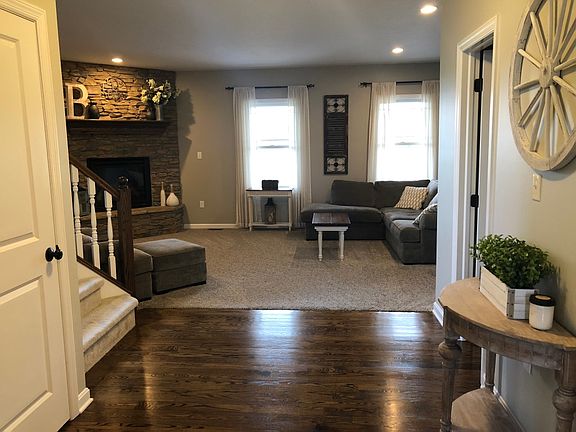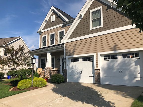 Custom built Craftsman Style home in the Amherst Village neighborhood. Stone, hardy plank and shake exterior. You will be greeted by gleaming Hardwood flooring and an open floor plan to accommodate your lifestyle. First floor features 9' ceiling height. Formal living room/Den with double door entry. Kitchen features include Custom maple cabinets, upgraded stainless appliances, tumbled tile back splash with decorative accents, spacious angled center island and is open to 13x12 Dining room, highlighted by vaulted 2 story ceiling, picture window and transom. A spacious Family room features a floor to ceiling stacked stone Gas fireplace, limestone hearth and decorative wood mantel. An angled side stair with large picture window leads to the second floor. The spacious Master bedroom includes paddle fan, recessed lighting, bath with ceramic tile flooring, custom oversized ceramic tile shower, double vanities and walk in closet. Three additional bedrooms and full bath complete the