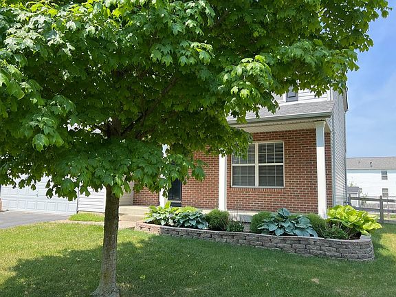 From the inviting front porch to the 16 X 20 backyard deck, this gently used home has it all! Versatile living/dining space, expansive kitchen w granite counters, travertine backsplash, 36'' stainless farm sink and stainless appliances include gas range and new refrig 2021. Large family/great room w gas log fireplace and space for your favorite sectional. Engineered hardwood & ceramic tile flooring throughout first floor. 1st flr laundry rm. Carpet 2023; stairs, hall & bedrms. Large primary bedrm w deluxe ensuite bath and large walk-in closet. Hall bath is clean as a whistle and 3 other bedrms have rarely been used. Large finished lower level w recessed lighting, neutral finishes, full bath. New roof 2019. Large fenced backyard for summertime fun and storage shed even has a workbench!!