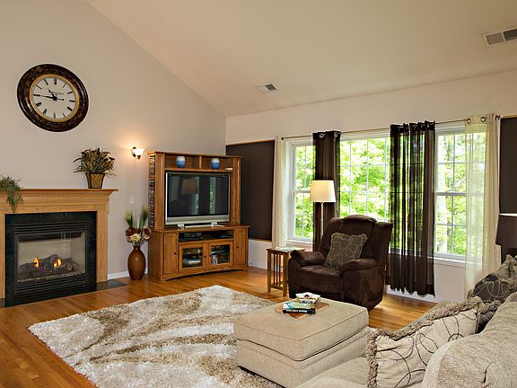 Not your mother's raised ranch. Bright and open, definitely contemporary. Soaring 14' ceilings, shows like new. Gas fireplace, spacious open kitchen with breakfast bar, stainless steel appliances, pantry, large dining area. Master bedroom suite with walk-in closet; master bath has jetted tub. Finished bright lower level walk out, family room and bath. On over two acres, spacious deck overlooks private, wooded backyard. Two zone heat with high-efficiency furnace; gutter helmets; two sheds plus gazebo and appliances are included. Nicely nestled behind trees off street. Original owners have painstakingly cared for this lovely home.