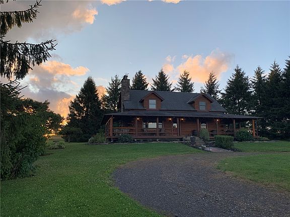 Escape to your own private retreat with this Rustic 3-bedroom, 2-bath Log Home with Breathtaking Long-Range Views! Nestled far off the road on 56 secluded acres, this property offers privacy and tranquility. This Authentic Log Home features a 3-sided wrap-around porch, perfect for enjoying nature and fresh air. Cathedral ceilings create an open and airy atmosphere in the living room, complemented by a large stone wood-burning fireplace. The country style kitchen connects to the dining room which openly flows into the living room. Modern amenities include radiant floor heating ensuring cozy warmth throughout the home. The private master bedroom offers a luxurious retreat with an en-suite bathroom. The 30 x 40 pole barn will give plenty of space for your equipment and toys. Step outside at night for dark sky stargazing and observing the heavens. This place is perfect for nature enthusiasts and those seeking a peaceful getaway, give me a call today!