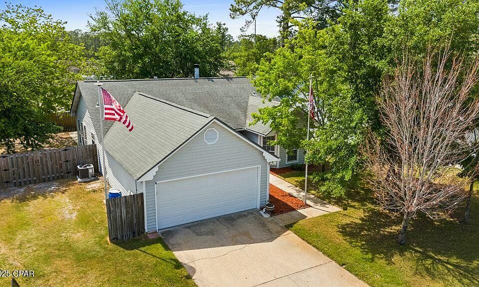 CURRENTLY UNDER CONTRACT, SELLER WILL CONSIDER BACKUP OFFERS. Located in the well-regarded community of Heritage Village, this charming single-level home offers 3 bedrooms, 2 bathrooms, and a layout designed for comfort and functionality. The spacious kitchen is a cook's dream, featuring custom cabinetry with built-ins and pull-outs, granite countertops, stainless steel appliances, and a brand-new stove with manufacturer's warranty. A breakfast bar with seating for four and a large, light-filled dining room with backyard access make it perfect for everyday living and entertaining. The cozy living room includes a woodburning fireplace, while the private primary suite offers an ensuite bath with a tub/shower combo. Two additional guest bedrooms and a full guest bath are located on the opposite side of the home for added privacy. The fully fenced backyard is a nature lover's paradise, with mature shade trees, a storage building, and a variety of fruit trees including pomegranate, lemon, and fig. A shallow well with sprinkler system keeps the yard lush and green. All of this is just 3 miles from the Gulf's sugar-white sands and emerald waters, and minutes from Pier Park's shopping, dining, and entertainment options. Don't miss your chance to make this home yours - schedule your showing today!