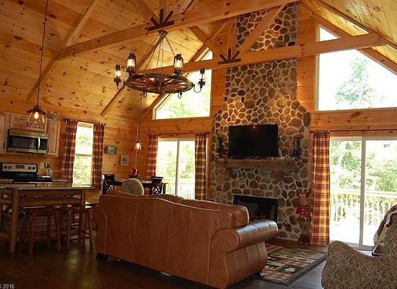 MOVE IN READY!The scent of pine and open-beamed & vaulted ceilings greet you when you enter this lovely 2 bedroom-open floor plan- cabin! Floor to ceiling, stone accented, wood burning fireplace; Well equipped kitchen with beautiful granite counter-tops, a custom island & stainless steel appliances; Granite and tile bathroom; Additional living area in the open loft; Large open deck with seasonal views of Mirror Lake; Covered front porch;Access to (2) private lakes & the Broad River! A MUST SEE!