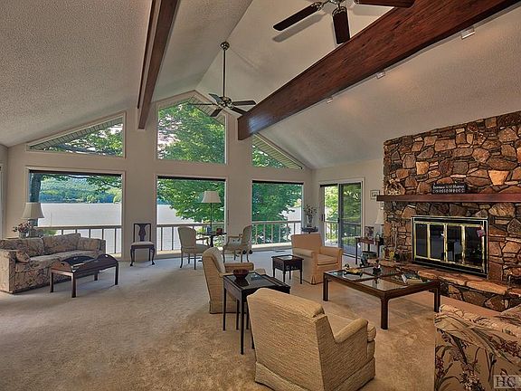 Located on the north side of Indian Trace, this magnificent oversized 1.8 acre lot offers some of the best big water and mountain views on Lake Toxaway. Gently sloping topography with approx. 280 feet of prime lake frontage with a dock, boathouse and seawall are in. The home was originally constructed in 1965 with renovations completed in 1981. Additional guest quarters "the cabin" is connected by covered outdoor walkway. The property is less than a mile to the lake toxaway country club, marina and Greystone Inn.