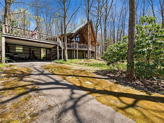 Nestled in the heart of the Laurel Highlands, this 3-bedroom, 2-bath mountain chalet offers a perfect blend of rustic charm & modern comfort. Located in the Kings Mountain community & golf course. The home sits on a wooded parcel, providing privacy & the true feeling of a mountain escape. Enjoy the outdoors year-round from the expansive covered deck—ideal for morning coffee, evening relaxation, or entertaining friends. Step inside the lower level to find a cozy, finished family room warmed by a propane stove, along with a bedroom & full bath—perfect for guests. The main level features a great room with a wood stove, an open kitchen & dining area with sliding doors to the deck, two additional bedrooms, & full bath. Upstairs, a large, versatile loft offers a living/sleeping area, & opens to a private back deck overlooking the peaceful backyard & firepit. Plenty of parking & storage areas provide ample room for all your gear. Home sold mostly furnished! Community pond area too!