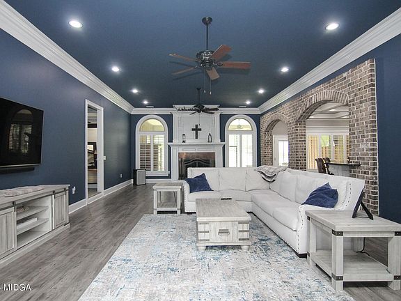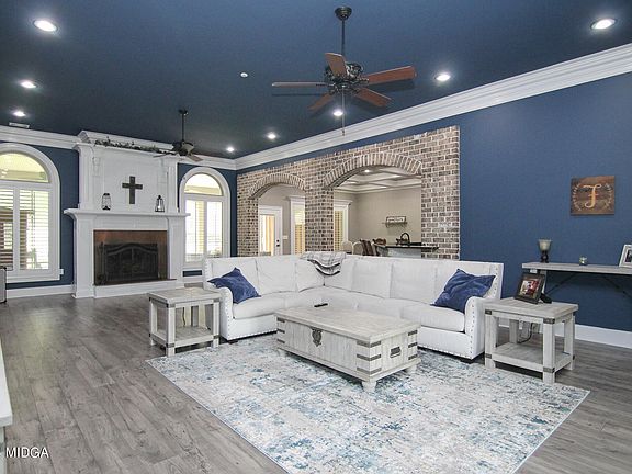 Dive into the perfect retreat - this custom-built haven tucked away near Moody Road offers something for everyone! Spread across 2+ acres with over 6,000 sq ft of meticulously designed living space, this home is a masterpiece. Step through the grand double doors and prepare to be impressed. A home office with a soaring vaulted ceiling flanks the entry, while the main living area wows with beautiful brick details and a stunning copper-trimmed mantle. The chef's dream kitchen boasts a colossal island, breakfast bar, granite counters, built-in appliances, pantry, pot filler, and a gorgeous brick trimmed copper vent hood - all designed to inspire culinary creations. Escape to your private sanctuary in the owner's suite, featuring a vaulted-ceiling sitting area with shiplap accents and a private entrance from the back porch. The spa-like en suite pampers with a jetted tub and a walk-in shower with four showerheads for the ultimate in relaxation. Three additional bedrooms, one with a private bath, offer ample space for family or guests. Upstairs, discover four bonus rooms and a full bathroom, perfect for a game room, theater room, or additional bedrooms.