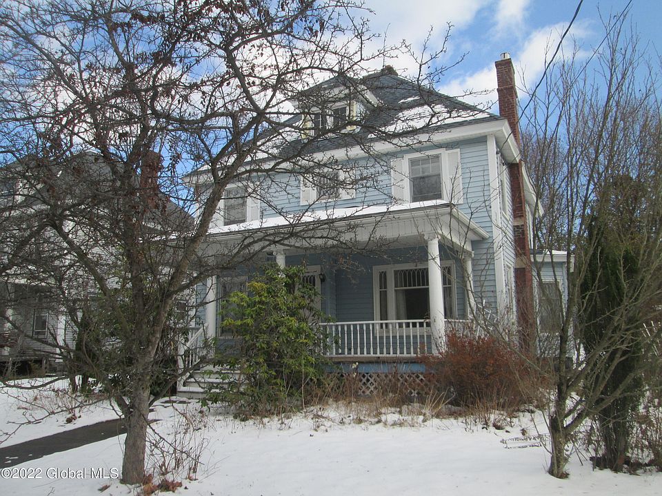 Gloversville two story Victorian home with Spacious Living room and Dining room with all the amenities that make this a quality home. Fireplace in Living room, formal dining room, newer fully applianced eat in kitchen with breakfast nook, shining hardwood flooring, entry foyer off cozy front porch area for viewing all the great activities on the Street, four bedrooms with closets and stained glass windows. Full basement is partially finished. Detached two car garage, vinyl siding and windows, outside entrance on driveway side.newer roof, enclosed rear porch. Nice landscaped yard with flower gardens. You will not want to miss this home. Ready for new owners. Qualified buyers only.