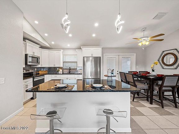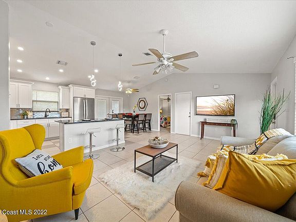 Don't miss out on this updated 3/2 in NW Palm Bay! You are going to love the expertly remodeled kitchen with granite tops, white shaker cabinets, stainless steel appliances and new island. Both bathrooms are also remodeled, and the driveway has been widened to provide loads of parking for your toys or guests. The kitchen, dining area and living room combine in one large space with cathedral ceilings, providing a terrific space for you to share time with your family and friends. Don't delay! Schedule your exclusive showing today!