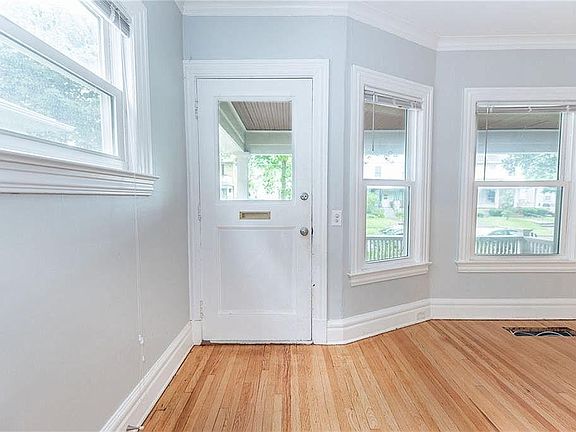 Large Front Porch Living Room with bay window front. Dining Room. 3 Bedrooms all with Closets. Back Bedroom also has Bonus room. Kitchen with Dishwasher, and granite countertops. Apartment has attic storage. Shared backyard. Parking available for two vehicles in tandem (with one parking behind the other). Free, designated for apartment, washer and dryer in basement. Keyless entry for front and back door. Greenlight Internet available in neighborhood but not yet installed on property. No Smoking. If interested in place after viewing rental application including landlord reference, employment verification, and credit check required. Available July 1st. Charming 1920's duplex - first floor. Cats ok, no Dogs.