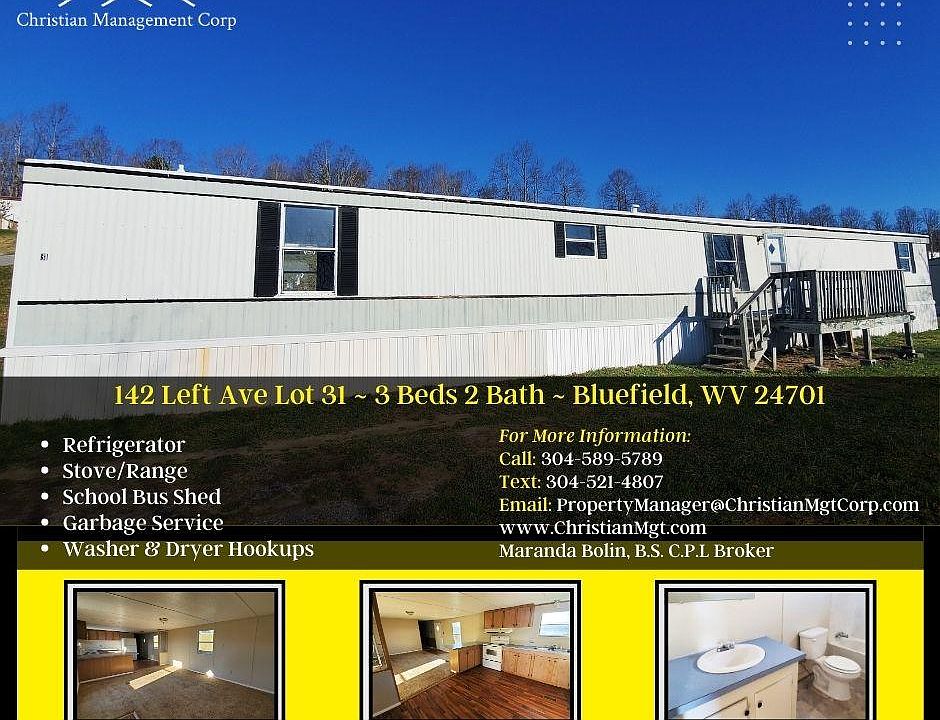 This 980 square foot single family home has 3 bedrooms and 2.0 bathrooms. This home is located at 142 Left Ave, Bluefield, WV 24701.