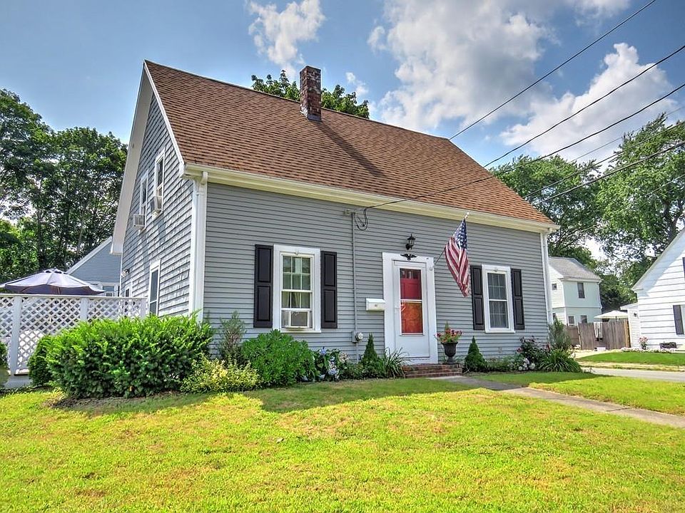 Charming Cape with great living space and an optional first floor bedroom. Oak cabinet kitchen has a dining area with an attractive wood stove set on a beautiful stone hearth. All appliances remain including the washer and dryer. Nice size formal living room, and a formal dining room which could also be used as a first floor bedroom. Upstairs are three additional bedrooms and the full bathroom. Enjoy the beautiful weather from the deck overlooking the yard. There are two sheds in the back yard for storage. The roof is approximately 3 years old.
