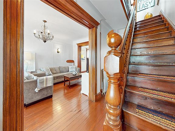 Come see this Beautifully Maintained and Spectacularly Updated Single-Family Home in the Cypress Hills neighborhood of Brooklyn. Upon entering the property, you'll notice the Huge Driveway, Suitable for 4 Cars, a Charming Porch, and Original Hardwood Floors, Doors, and Millwork throughout. This Home's First Floor has a Formal Living Room with Beautiful Bay Windows and Original Pocket Doors, a Spacious Formal Dining Room, and an Updated Eat-in Kitchen Equipped with Tons of Cabinetry, Recessed Lighting, Stainless Steel Appliances, Pot Filler, an Island for Extra Work Space and Dining, and Access to a Tranquil Backyard! The 2nd Floor Features a Beautifully Updated Bathroom and 3 Great Sized Bedrooms. The Top Floor (not shown in photos) has 2 Additional Rooms that can be used as Bedrooms, Workspace, Storage, etc. The Basement features Additional Living Space, Perfect for a Family Room, a Laundry Area, and Access to the Backyard, where there is a Back Porch and a Detached Garage. In Close P
