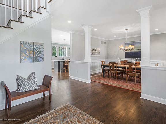 Exceptional custom-built Colonial w/ commanding curb appeal set high dry in one of LSs most coveted neighborhoods! Just 3 years young beautifully appointed inside out w/ breathtaking natural light, custom millwork hardwood floors. Spectacular kitchen w/ white cabinetry, prof. grade appl, breakfast bar seating eat-in area. Kitchen opens to family rm w/ coffered ceiling gas FP access to stunning covered porch w/ wood-burning FP -all overlooking gorgeous pool yard. Master suite w/ over-sized walk-in closet top of the line spa-like bath w/ his/her sinks, glass encl. shower tub, generous sized BRs w great closet space and luxurious baths w/ stylish selections much more. Over 1/2 acre of prof. landscaped grounds w/ irrigation sys outdoor shower! Mins to NY ferry!