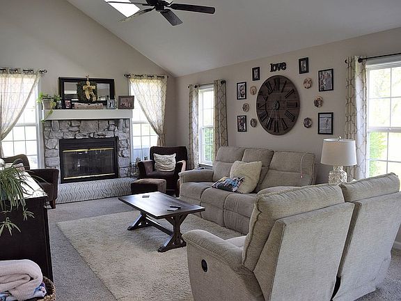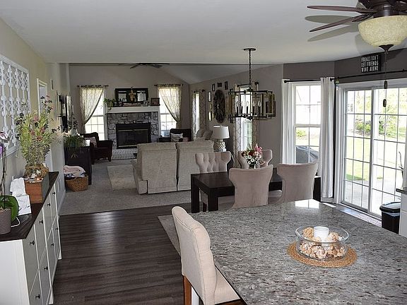 Well-maintained and updated 4 bedroom, 2.5 bath Colonial on over 4 acres has room for entertaining and a beautiful view of the countryside. Grand entrance with French doors to an office and formal living room flanking the entrance. Continue on to dining room, large family room with elevated ceiling, skylights and fireplace, and then the expansive eat-in kitchen with granite countertops and tile backsplash, center island, and sliding doors to a patio. There is also a convenient first floor laundry/mudroom and half bath for guests. Upstairs, find a wide Master bedroom with crown molding, walk-in closet, and full en-suite bath. Further down the hall are three other substantial bedrooms with ample closet space, and a roomy hallway bath. Outside, find a welcoming covered front porch with a breathtaking view of the countryside, and more beautiful views from the back patio. Home also has newly finished basement living space and storage with a sliding door walk-out to the back yard, and attached two car garage.