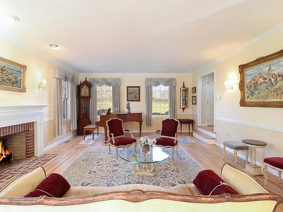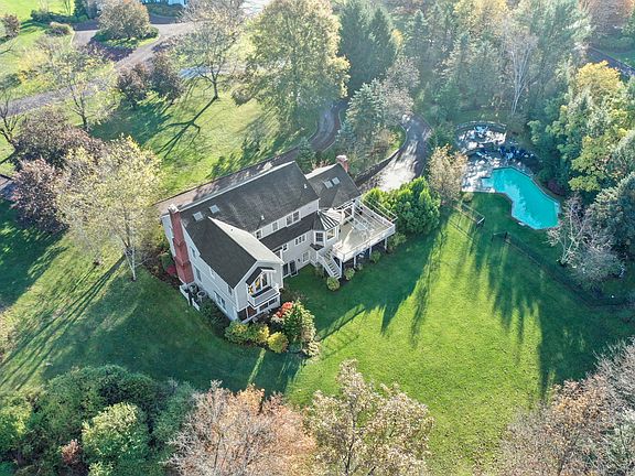 This classic center Colonial has a large and sunny front to back living room with fireplace, and French doors that lead you to a sunroom with beautiful views of the park-like backyard. The large kitchen with breakfast area is adjacent to the double height family room with fireplace. Generous Master Suite with sitting room/den, 3 additional bedrooms and 2 baths complete the 2nd. floor. The finished, walk-out lower level, with additional bedroom, bathroom and playroom, works perfectly as a guest/Au Pair suite, and pool house. Private setting just steps away from public and private schools. LA accompany