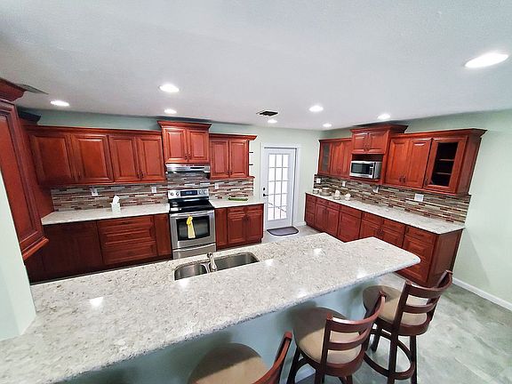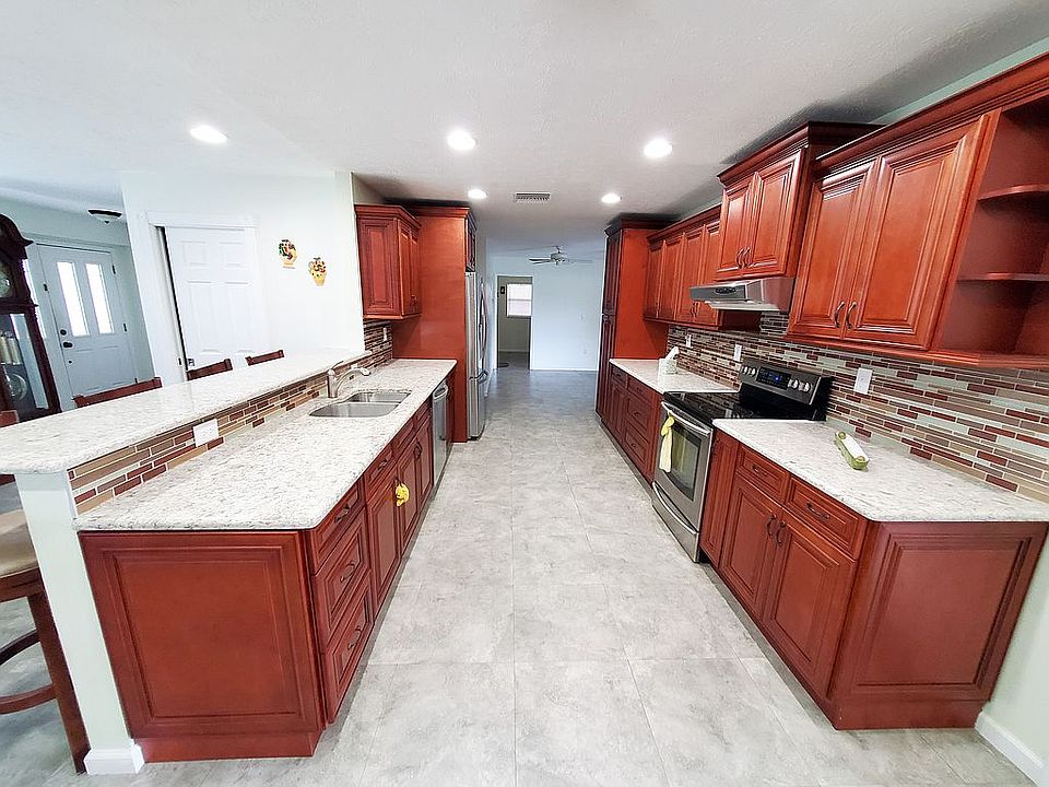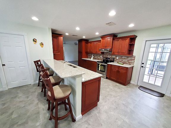 Large family home in the private Willoughby Acres community that is ideally located near the best that Naples has to offer. This community has no Home Owners Association (HOA) fees or gated entry requirements and has sidewalks all around for walking, running or riding bicycles. This 4 Bedroom, 2 and 1/2 Bathroom single story contemporary style home has approximately 2,371 square feet under air, two car attached garage with wall to wall utility cabinets and an "elite" (insulated roofed) carport. A screen enclosed 12x24 foot maintained in-ground pool (with child safety fencing) is ready for you to cool off and relax in or enjoy a low impact exercise routine. Ceiling fans are in every room with ample closet space and a walk-in closet and shower in an over-sized Master Suite. Split bedrooms allow for the over-sized Master Suite on one side of the house, three bedrooms and full bath on the other side. One bedroom is painted with a Disney themed mural on all four walls. Half bathroom conveniently located near the front entrance for Guests. This home was structurally remodeled in 1999 and, in 2014, was upgraded with an entirely new and improved open floor plan kitchen with hygienic maintenance-free Cambria counter-tops, beautiful new cabinetry, stainless steel appliances (All recently purchased kitchen appliances are included) and large 16" tiles throughout. Home sits centered on .35 Acres and is irrigated by a 7 zone sprinkler system fed by a high safe yield well and a fenced in yard which is large enough for a substantial garden or greenhouse. A fruiting mango and young grafted navel orange tree await your harvesting. The property has two aged Live Oak trees and a blossoming Gardenia providing great shade and delightful aromas. Driveway was professionally pressure washed on 10/10/2020.