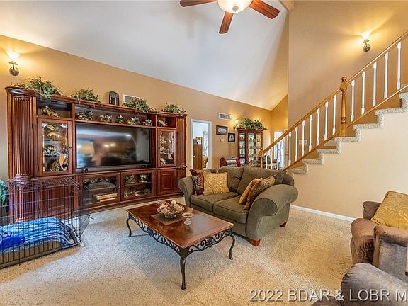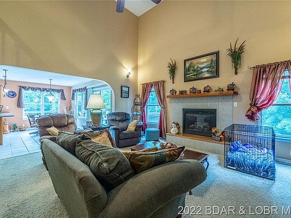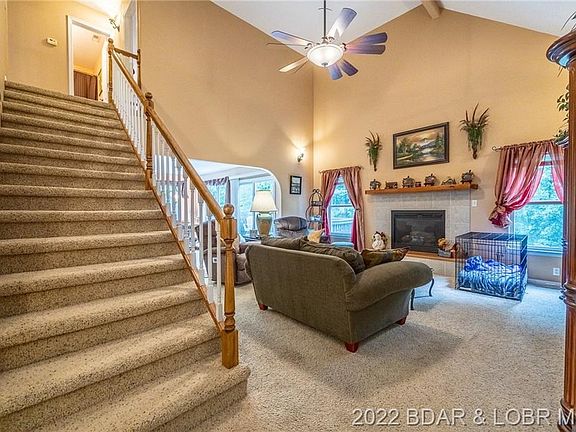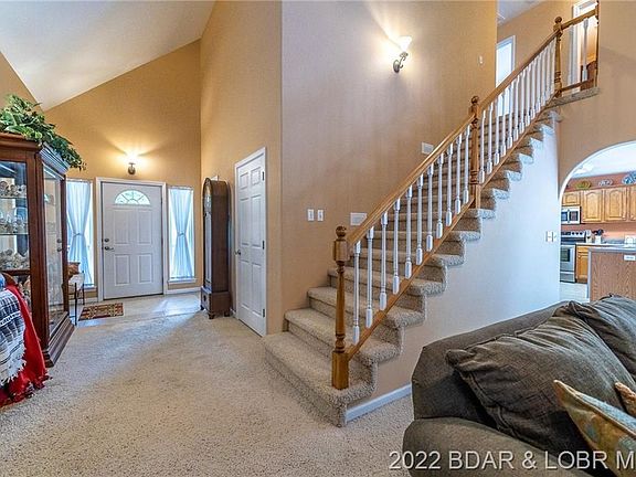 MAJOR PRICE DROP! Its all about location with this home situated on 4 acres located just 3 minutes to Camdenton and Camdenton Schools with blacktop to your front door. Beautiful setting with loads of privacy. Home has had many recent updates including, newer roof, newer siding, newer stone on front of home. Step inside and you will immediately notice the soaring 20ft ceilings in the living room with stone fireplace, formal dining room with real hardwood flooring, eat in kitchen with loads of cabinets, center island with bar top seating, tile floors and stainless appliances. Lots of windows to bring in the natural lighting. Home does offer main level living with large master bedroom and bath featuring double vanity sinks, corner tub and separate shower, main level laundry room with lots of cabinets and main floor half bath. Large deck on back side of home. Upper level consist of 3 more bedrooms and full bath with newer luxury vinyl flooring. Attached 2 car garage completes this package!