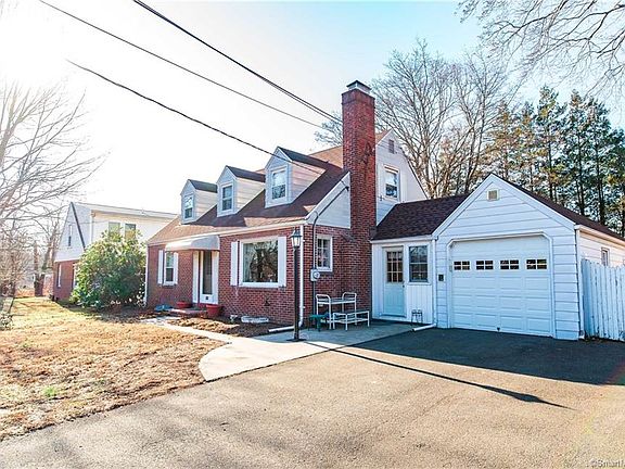 Enjoy year round serenity in this this cozy yet spacious brick cape. Recently painted LR w/ fireplace & hardwood floors, tranquil pond-view and refreshing central air. French doors lead from the LR to the dining area and a 2nd set of French doors continue onto the spacious Trex deck/patio overlooking the large back yard with 10x12 storage barn. The efficient U-shaped kitchen with newer dishwasher and built-in microwave sits between the bright and airy dining area and the sunroom/breakfast nook, which boasts sliding doors leading to the patio and also overlooking the backyard/play area. Access the bonus 17x10 climate controlled Home Office via one of its 3 entrances. The first floor hosts a 13x10 BR and 11x9 BR of the possible 5 BR's this house offers. Upstairs is the large Master Suite with exposed brick wall and two 16x11 areas connected by a doorway next to the pleasant bathroom with brand new shower. The doorway allows this area to be transformed into 2 separate bedrooms if an extra (5th) bedroom is desired. Plenty of extra room: The lower level adds 600+ sq. feet of heated family space incl. laundry area, bonus room and large bedroom (both carpeted) + XL storage area & outside access via basement door. Walking distance to Town Center & Middle/High Schools, this lovingly maintained home provides nearby access to Rt. 91/Merritt and sports a rebuilt furnace and newer roof over the garage and sunroom. Convenient to shopping and restaurants ,Yale, Quinnipiac, Southern.