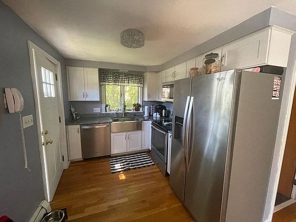 Welcome home to this charming colonial home with 8 rooms, 3 bedrooms, 1.5 baths, over 1700 sq. ft. on .27 acre private wooded lot on dead end street. Gorgeous large updated custom kitchen with granite counter tops and SS appliances, spacious dining room, living room and 1//2 bath complete the first floor. The second floor offers a large primary bedroom with walk in closet, two additional bedrooms and full bath. Bonus, two additional rooms in lower level for an office and play room! Newer multi zoned Buderus heating system, shed, gleaming hardwood floors. Don't miss out on this immaculate adorable home! Start Packing!