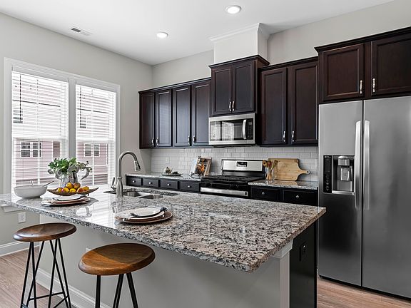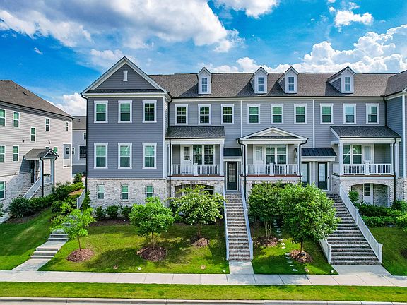 Welcome to Savaan, a sought-after community in a prime Cary location, just minutes from RTP, RDU, shopping, dining, and so much more! This beautiful three story townhome was built by Ashton Woods in 2020 and has been immaculately maintained ever since. Plus, fresh paint throughout! When you enter on the bottom floor you are greeted by a large bedroom perfect for a home office or in-law suite, as well as a full bathroom and oversized closet. Not only that, you will find one of TWO outdoor spaces! Upstairs you will find an open-concept living area completed by a spacious kitchen, featuring an island, dining area, stainless steel appliances, granite countertops, tile backsplash AND gas range. Don't miss the peaceful balcony! Upstairs is the primary suite with vaulted ceilings, en-suite bath, and large closet space, along with 2 additional bedrooms. Your HOA dues include membership at the community pool, clubhouse, walking trails and a dog park. Don't miss the chance to make this home yours!