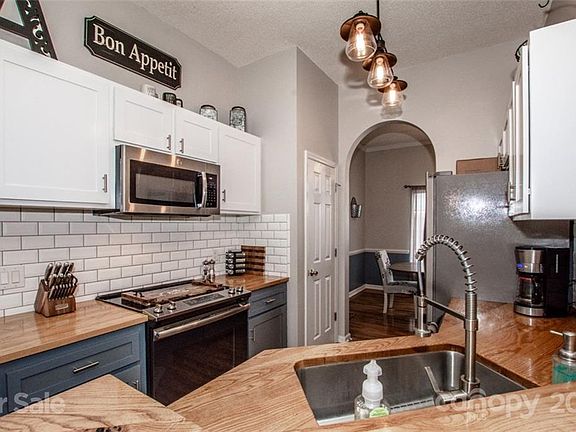 Welcome home to this beautifully updated 3 bedroom/2 bathroom ranch located in a peaceful country setting. Upon entering the home you will be immediately impressed buy the quality of the updates, the 10' ceilings, arched windows & doorways, and wood burning fireplace. The main living area is ideal for entertaining with an open concept layout. The kitchen features custom cabinetry, tile backsplash, new wooden countertops, a breakfast nook and breakfast bar. The owner's suite features a spacious bath with new double vanity, tiled shower, jetted tub, and two closets. Split bedroom floorplan. Modern lighting and fixtures throughout. Large 2 car attached garage. The home features new laminate flooring and low maintenance vinyl siding. Step out back onto a large deck overlooking a fully fenced in yard with outbuilding. Easy access to Taylorsville, Hickory, and Statesville.