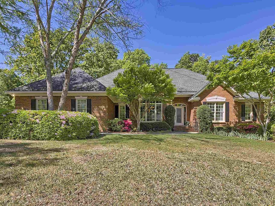 Tucked away, minutes from River Bluff HS in the beautiful River Oaks community is this gorgeous all brick custom home at the end of a quiet street. On nearly 3/4 of an acre are mature trees, blooming azaleas & dogwoods resembling the loveliest of parks! Even prettier at night with front & backyard landscape lighting, the peaceful nature setting in the back will make you not want to leave & can be enjoyed from the screened porch attached to the lower studio which can serve as a home office, man cave, she shed, workshop or recreational space with half bath & kitchen! The home theater or flexible guest/play/work space is upstairs in the Bonus room & equipped with surround sound! Upstairs also has an extra large bedroom, full bath & lots of walkout attic storage! Master bedroom on MAIN FLOOR with custom walk in closet shelving, double granite vanities, extra tall glass door shower & whirlpool tub! High end custom designer treatments & paint throughout! Two large bedrooms downstairs with Jack & Jill bath! Open dining room with high ceilings lead into library/formal living room where you can enjoy an evening beverage by the gas fireplace, grab a book or have a conversation! Huge custom eat in kitchen full of pull out glide enhanced white cabinets, a generous island topped with gorgeous granite, new black stainless appliances including wall ovens is truly the heart of the open concept living space flowing into the exposed brick sunroom & living room! Hurry to schedule will sell fast