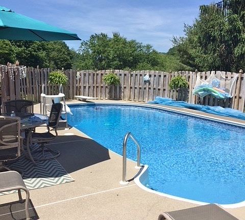 Beautiful ranch with addition! Newer addition features master suite #2 with walk-in closet, family room, and 2-car garage. Electrical and plumbing hookups for kitchenette by stairs still under floor for separate quarters. With approximately 2 acres of land, the exterior features paved drive, an in-ground heated pool, fishing pond, patio, open deck, and privacy fence. Heat pumps are 5 years old (2014), kitchen stainless appliances in 2018.All bathrooms are updated, water is public and private well, and septic with jet system. Pool is 17 ft X 37 ft, and 8 ft. deep with diving board, propane heater, and new liner in 2015.