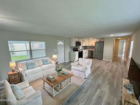 Fully renovated manufactured home in Holiday Park, just off of Malabar Rd near Home Depot. This is a 24 hr guard gated community where YOU OWN THE LAND. The home has been FULLY RENOVATED. Inside you will see upgraded stone polymer core laminate flooring, wood cabinets and all new drywall. The layout has been improved to offer a stackable laundry closet, large master shower and quartz counters. Once you walk in you will see this is a beautiful home and ready for you in a wonderful community with lots of amenities.