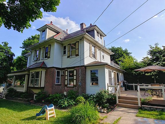 This lovely home is located on a corner lot in the quaint boro of Perkasie. You enter in the inviting foyer entry which offers double leaded glass door into the great/living room area with wood floors and 9' ceilings and opens to the dining area. The kitchen features a beautiful built- in cupboards, breakfast room, pantry and new backsplash. Off Kitchen is a full bath with shower stall and new vanity. Ascend to the second floor from either of the two stair cases (one off the foyer and one off the kitchen). to three large bedrooms, master bath, hall bath and laundry room. A few steps to the third floor and to 3 bedrooms and storage area. The rear yard is mostly fenced with large deck. The wrap around porch is super for entertaining guest. There is a two car detached garage. You must see to appreciate all this home has to offer you. Make your appointment. But I only need a 4 or 5 bedroom you say? No problem. Use the 3rd floor bedrooms as either guest room, craft/hobby room, office, workout room or storage. Note storage room could be a full or half bath as it is located above the bathroom and laundry area on second floor. Please NOTE: Tax records are incorrect with square feet. The 5 bedrooms were all on the second floor with one bath, prior to 2nd bathroom and laundry room being put in.