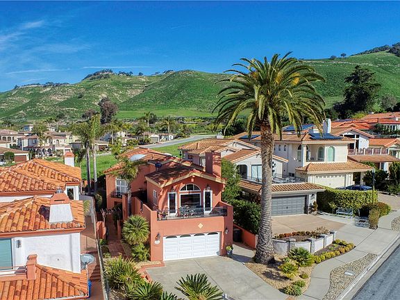 Warm, Inviting and Incredible location from this gorgeous Tuscan style ocean view home located just steps to the beach, park and world class surfing! This is the ultimate location for sports enthusiasts who enjoy surfing, kayaking, para gliding, frisbee or just relaxing at the beach! Stroll along the oceanfront with your cup of coffee and embrace the beautiful sunsets, frolicking dolphin, otters and seasonal whale migration! Beach access is available via stairs both directly north and south of this home. This quality built home has views from all the main living areas from Port San Luis to Point Sal. Light and bright with tons of natural lighting throughout with great open floor plan concept. Tons of architectural details and numerous private outdoor living spaces, decks and patios. Open the dual french doors off the living room and enjoy the sound of the surf. The master suite located on the lower level offers access to a private rear yard with a raised jetted hot tub and views of the coastline, Pirates Cove and Avila Bay. Also featured are, Walk-In closet, huge step in glass block shower and soaking tub and dual vanity sinks. The guest bedrooms also located on the ground floor share a full bathroom with beautiful Sautillo floor tiles and Spanish tile counters. The larger of the guest bedrooms features french door access to a private side yard patio and outdoor shower. Upstairs features all the main living areas with a formal living room with a built-In fireplace, formal dining room, family room and kitchen. Vaulted ceilings grace the upper level throughout. The kitchen offers stainless appliances, granite counters and wood grained tile floors. Spacious 2 car garage with laundry area and built-In cabinetry. Worlds class restaurants featuring wine events and music are within a short stroll of this home and also there are wonderful hiking trails with incredible views and wildlife. Public tennis, basketball and pickle ball courts are also located nearby. Call for your private showing today!