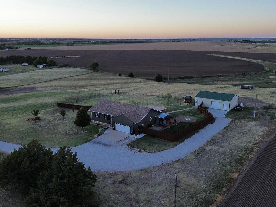 Stunning 5~Bedroom Home on 4+Acres with views of Cheyenne Bottoms!!! This fully remodeled 5~bedroom, 3~bathroom home offers spacious and luxurious living, nestled in on over 4 acres of serene countryside. The master bedroom includes a private en suite, providing a perfect retreat vibe. With a light and airy design throughout, the custom kitchen is the heart of the home, featuring large island seating and elegant cabinetry. All kitchen appliances are included, adding even more convenience to the space. Enjoy cozy evenings on the covered deck by the fire pit, inside by the fireplace upstairs or downstairs in the cozy finished basement. This property also boasts a 30x40 heated shop, ideal for hobbies, hosting's, gym space or storage and a fully fenced in yard with lean~to if wanting to add horses!! Surrounded by picturesque fields, this is the perfect balance of modern amenities and peaceful rural living~~a must~see property!!!!