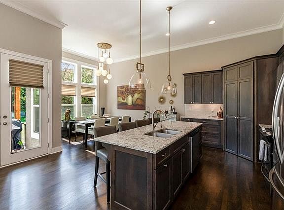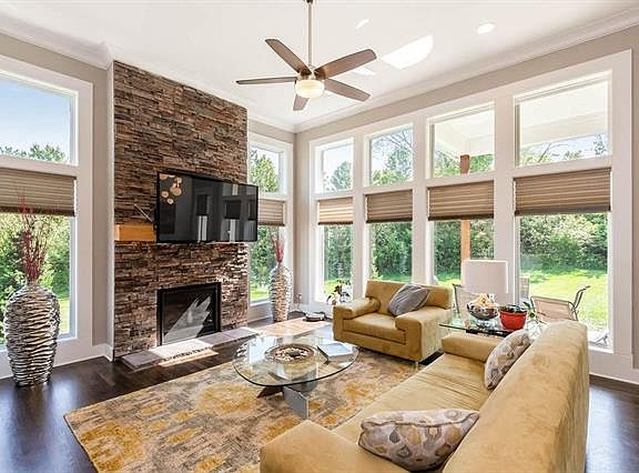 Stunning & Private Maintenance-Free Home! Serene View, Backs to Trees! End-Unit BETTER than New, Over $8,000 in Custom Window Coverings & Restoration Hardware Light Fixtures to stay! Open Floor Plan, Gleaming Hardwoods, Granite Countertops, SS Appliances, Gas Stove, Large Island, Walk-in Pantry, Gorgeous Stone Gas FP, Floor-to-Ceiling Windows Provide Plenty of Natural Light. Finished LL w/Wet-Bar, Rec Room & 3rd BR & BA, Plenty of Storage Rm! Covered Patio feels like Private Retreat! Great Amenities & So Much More!
