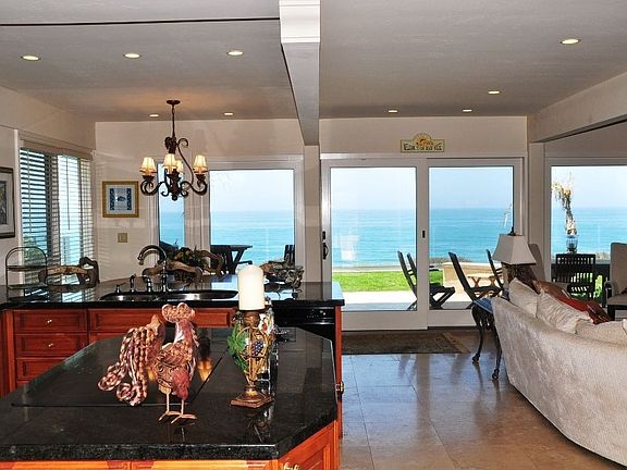 Newly Rebuilt In 2006 - Direct Ocean Front With 40 Feet of Frontage. Rarely Lived In And Elegantly Finished With A Sweeping Staircase, Travertine Floors, Crown Moldings, Cherry Wood Cabinets In The Kitchen, And A Marble Master Bath. The Master Bedroom Enjoys A Kitchenette And A Very Expansive Patio. The Kitchen Is Highly Upgraded With A Walk In Pantry And Large Breakfast Nook Overlooking The Pacific. The Kit, Nook, Fr, Mbr And Dr All Have Fabulous Ocean Views. Exercise Pool/Spa With Two Waterfalls.
