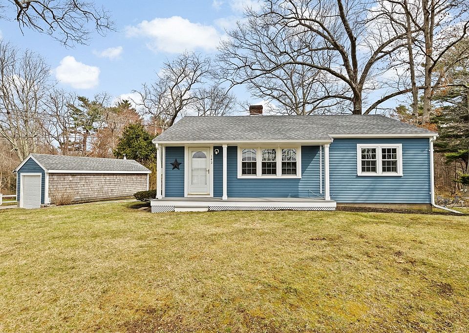 Welcome to stunning 142 Old Oaken Bucket Road! This meticulously maintained Ranch features an eat in kitchen with stainless steel appliances throughout. As if the kitchen isn't lovely enough, attached to it is an ample sized all season sun porch providing even more space for entertainment and tranquility. A tastefully and modern updated full bathroom is located right off the kitchen and leads to two charming bedrooms featuring hardwood flooring throughout. The front living room boasts a freshly painted and bright atmosphere, with a wood burning fireplace, and breathtaking views of the cranberry bogs that have made Old Oaken Bucket Road famous. If bonus space is a necessity, buyers will enjoy a fully carpeted finished lower level for even more space and storage. A charming detached one car garage leads us to almost a half-acre of gorgeous land surrounding the property. This home is truly special and provides a unique opportunity to enter a highly coveted neighborhood in Scituate!