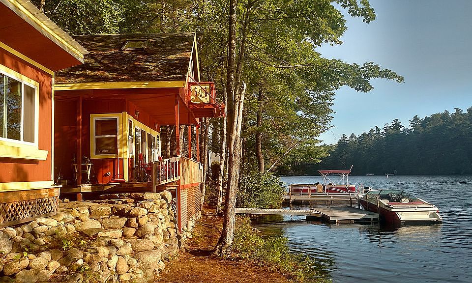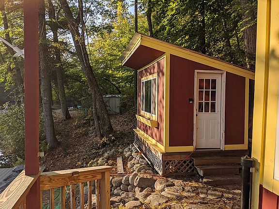Cozy private Cottage 652 sqft on .40 AC. with 106 ft of Waterfront property on Great East Lake. Boat House 8x12. Two large T-shaped aluminum docks. Off-road parking. Boats sold separately negotiable.